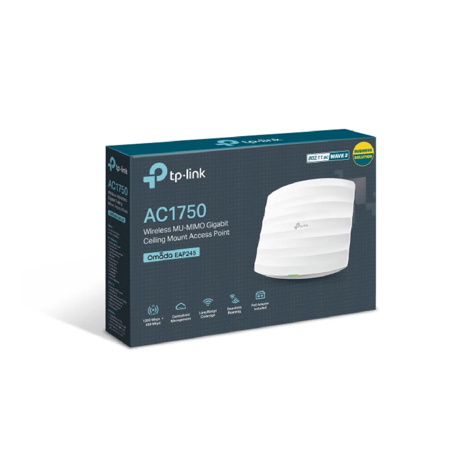 توفر أكسس بوينت لاسلكية EAP245 مثبتة على السقف تغطية شبكات Wi-Fi في المساحات الكبيرة، حيث توفر تجربة اتصال سلسة وسريعة عبر سرعات تصل إلى 1750 ميجابت في الثانية، وتعمل بترددين مختلفين، حيث تصل سرعة التردد 2.4 جيجاهرتز إلى 450 ميجابت في الثانية، بينما يوفر التردد 5 جيجاهرتز سرعات تصل إلى 1300 ميجابت في الثانية، مما يضمن أداء عاليًا حتى في أكثر البيئات ازدحامًا.
