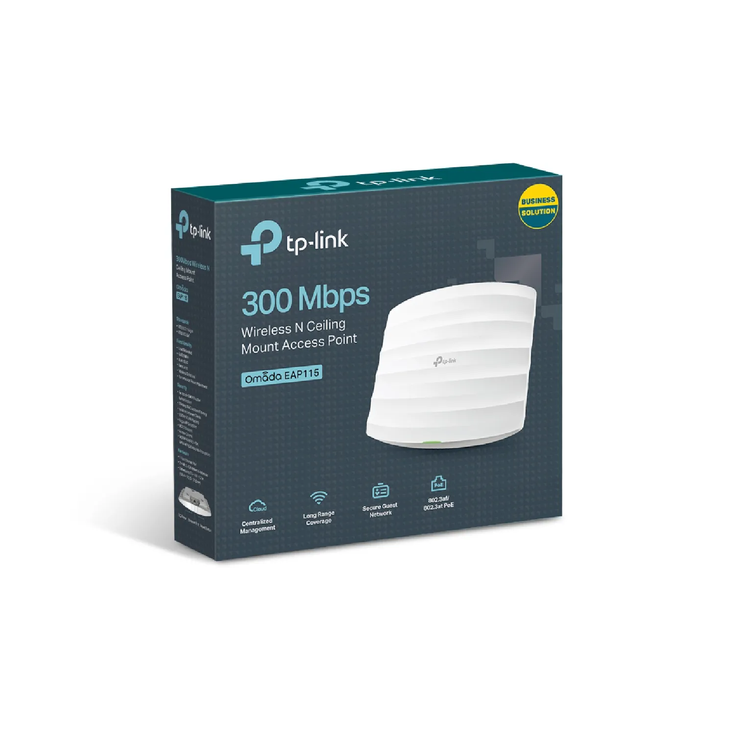 تقدم أكسس بوينت EAP115 بسرعة 300Mbps وهي الحل المثالي لتوفير تغطية Wi-Fi موثوقة وسريعة في البيئات التجارية، وتم تصميمها لتكون سهلة التركيب على الأسقف، مما يجعلها مثالية للمكاتب، المتاجر، والمراكز التجارية.