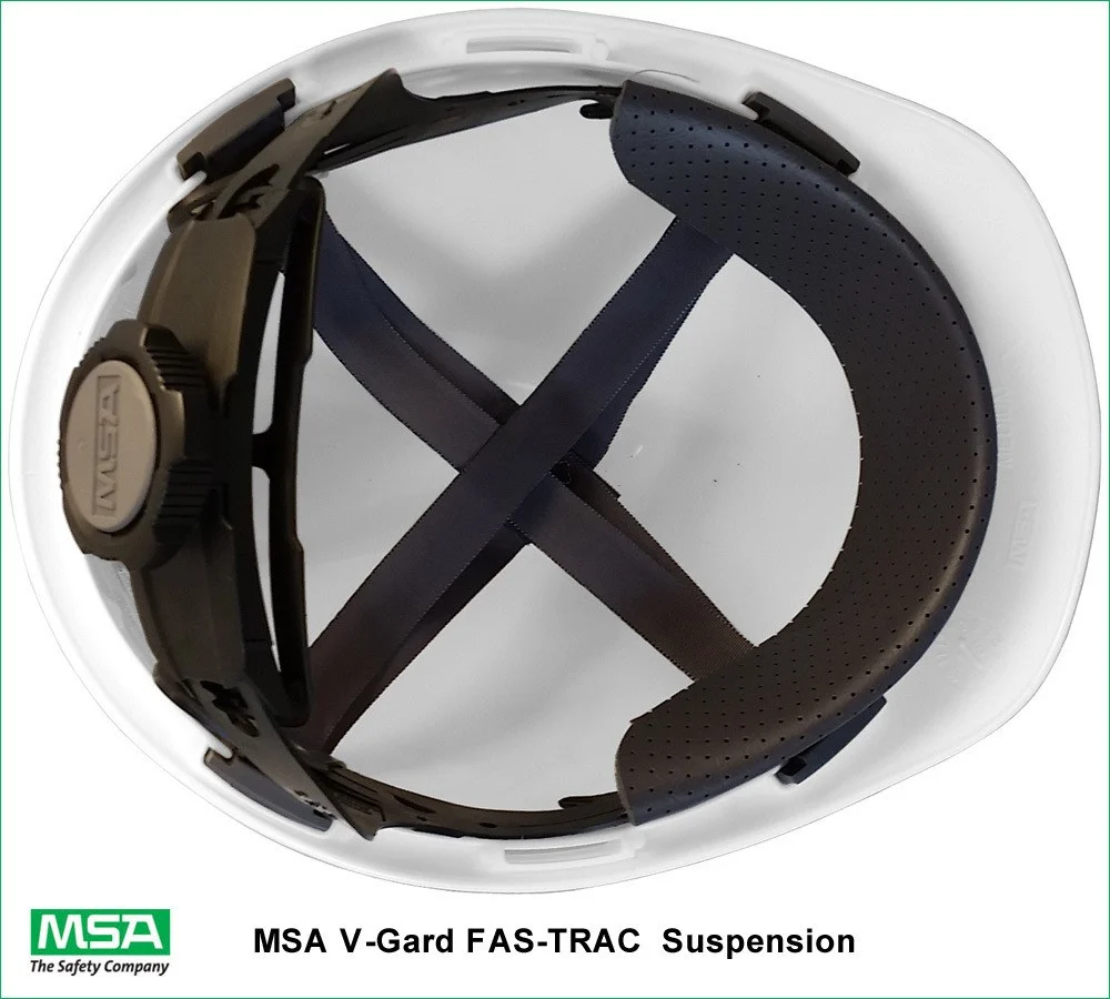 خوذة أمان MSA V-Gard باللون الأبيض بنظام تعليق Fas-Trac