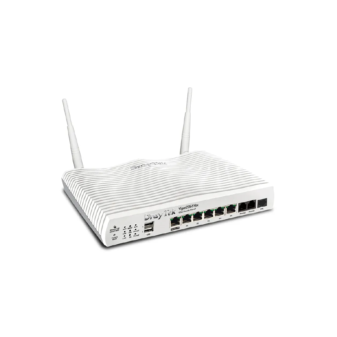 يدعم راوتر Vigor2865VAC تقنية VPN (الشبكة الافتراضية الخاصة)، حيث يمكن للراوتر إنشاء ما يصل إلى 32 اتصال VPN بقدرة نقل تصل إلى 300 ميجابت في الثانية، مما يتيح للمؤسسات إنشاء أنفاق آمنة بين فروعها المختلفة أو للموظفين العاملين عن بُعد للوصول إلى موارد الشبكة بشكل آمن. علاوة على ذلك، يأتي الراوتر بمنفذين FXS لدعم VoIP، مما يسهل إعداد وتكوين المكالمات الصوتية عبر الإنترنت بفضل التوجيه التلقائي للمنفذ وحجز النطاق الترددي لتجنب أي انقطاع أو تأخير في المكالمات.
