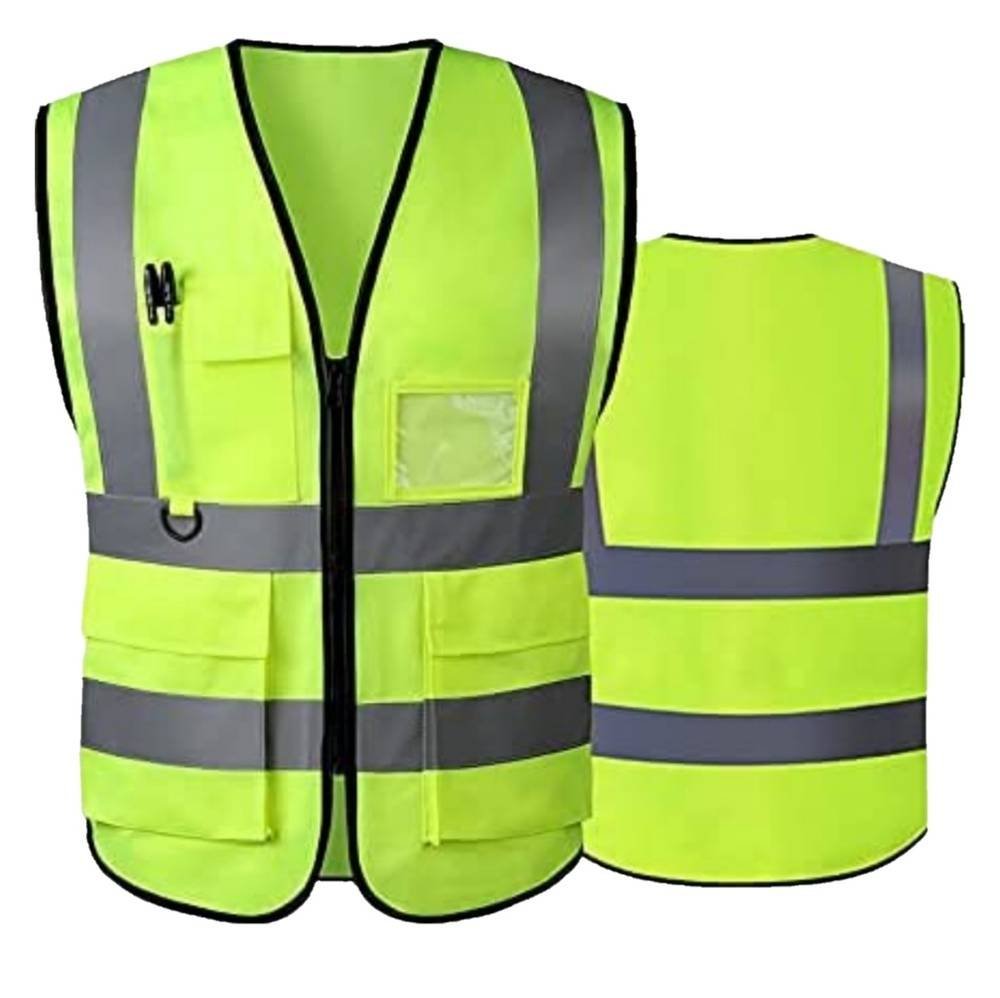 سترة سلامة بجيوب وشريط عاكس للإضاءة مصنوعة من البوليستر.
