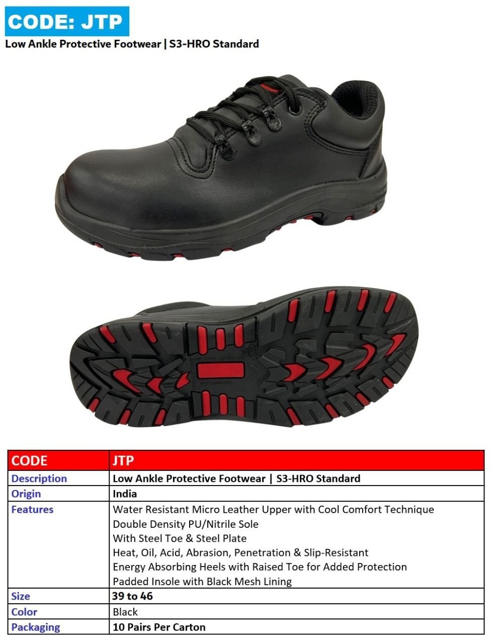 1 – بفضل مقدمة الحذاء الفولاذية أو المركبة، يوفر الحذاء حماية متقدمة لأصابع القدم من أي حوادث محتملة.