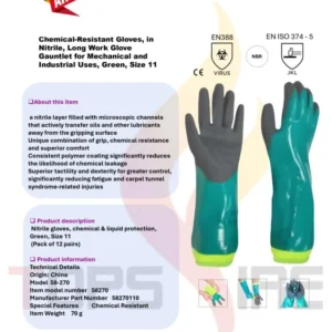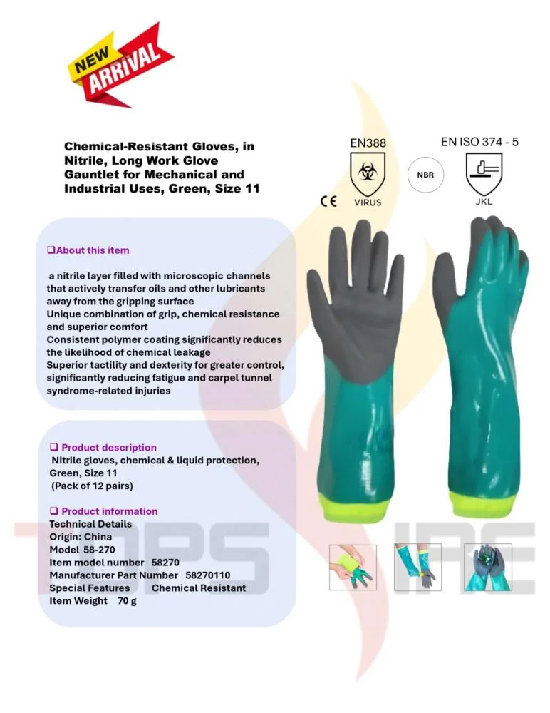 قفازات مقاومة للمواد الكيميائية، من النتريل، قفاز عمل طويل للاستخدامات الميكانيكية والصناعية، أخضر، مقاس 11