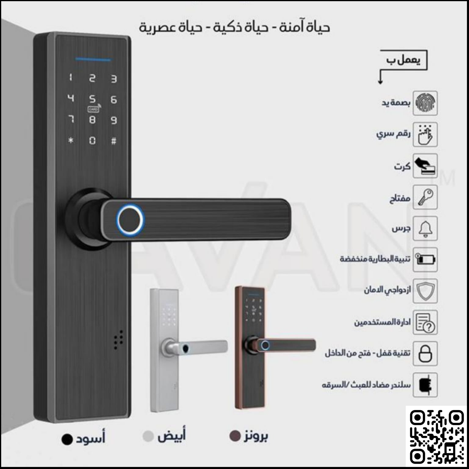 – يمكن فتحه عن طريق (بصمة، رقم سري، بطاقة، جوال، مفتاح)