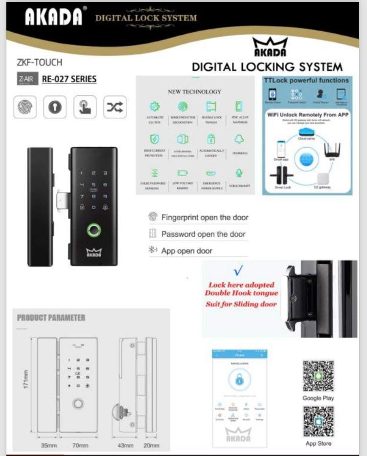 قفل باب ذكي | باب زجاج | Smart Door Lock | AKADA