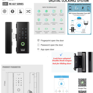 كيلون الكتروني لباب القزاز يفتح عن طريق البصمة و كلمة السر وعن طريق الكرت وعن طريق التطبيق ، يأتي باللون الاسود مقاوم للحرارة والغبار والامطار ، سهل البرمجة وقابل لما يزيد عن 99 بصمة ، ويأتي بكل ملحقاته مع مفتاح لحالة الطوارئ وايضا مدخل شاحن متنقل من نوع type-c.