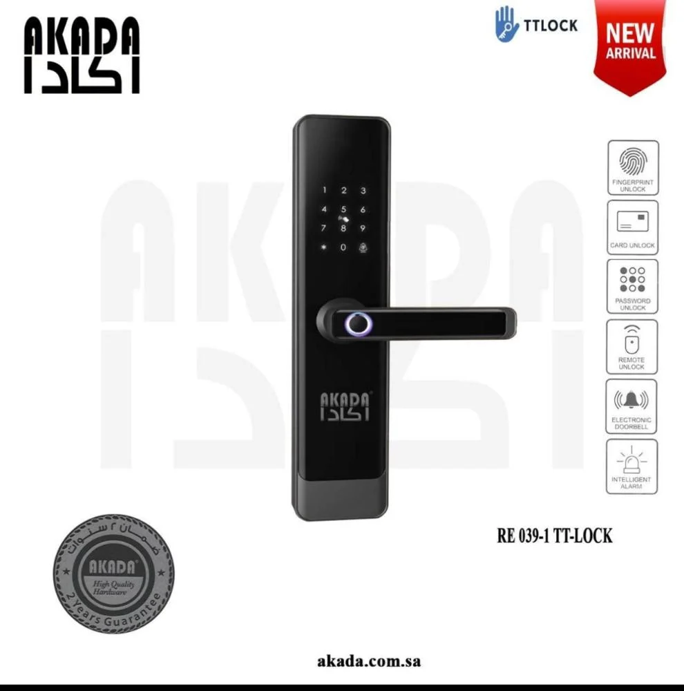قبضة الكترونية لابواب الحديد و الخشب و pvc تأتي ببصمة وكلمة سر وايضا بالبطاقة ، ضمان سنتين وتأتي باللون الاسود ، وتاتي بمفتاح لحالة الطوارئ وايضا مدخل للبطارية المتنقلة.