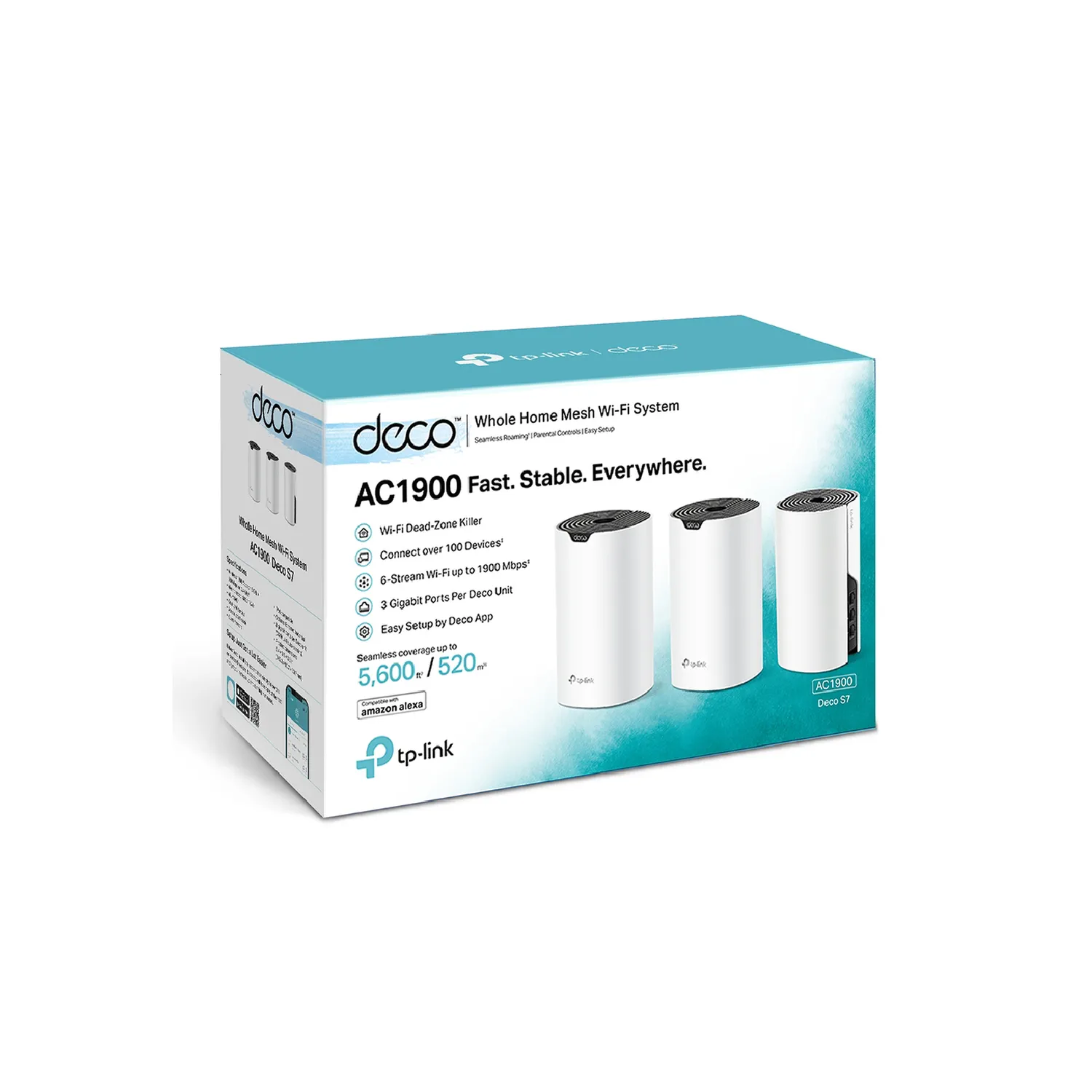 يعمل نظام واي فاي Deco S7 على تغطية مساحة واسعة تصل إلى 5500 قدم مربع باستخدام تقنية Mesh المتقدمة، تتصل وحدات Deco مع بعضها البعض بسهولة لتشكيل شبكة واحدة باسم واحد، مما يوفر لك أسرع سرعات ممكنة أثناء التنقل في المنزل.