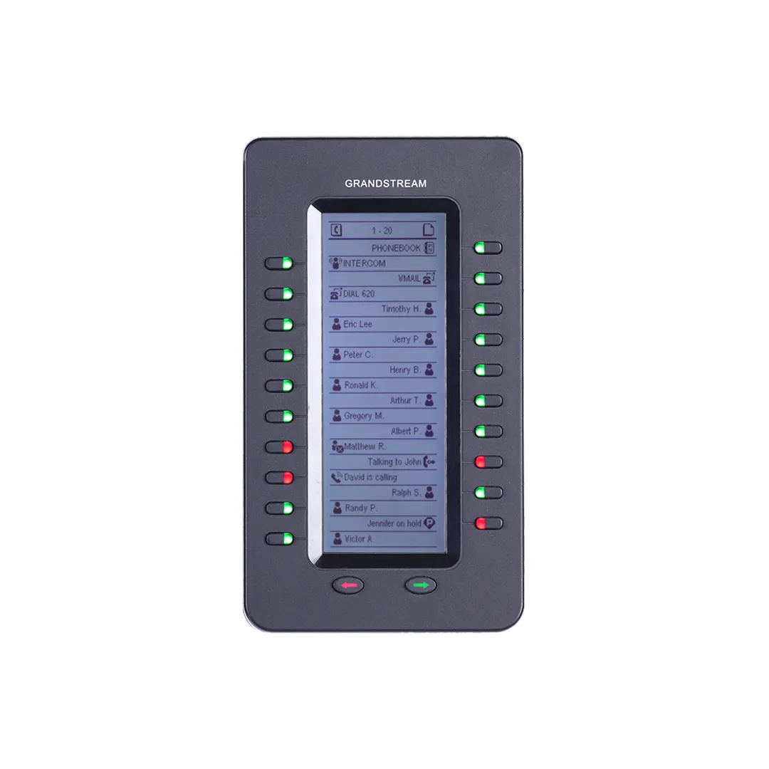 تمثل وحدة التمديد جراند ستريم GXP2200EXT الحل المثالي للمستخدمين الذين يبحثون عن تحكم متقدم ومرونة كبيرة في إدارة المكالمات. تم تصميم الوحدة بشكل مبتكر وسهل الاستخدام، حيث تحتوي على 20 مفتاحًا مزدوج اللون يمكن برمجتها بسهولة لتلبية احتياجات المستخدم المختلفة، كما تحتوي على مفتاحين للتنقل بين الصفحات، مما يسمح بعرض ما يصل إلى 40 جهة اتصال أو تمديد إضافي على شاشة الوحدة. تتيح وحدة التمديد جراند ستريم GXP2200EXT إمكانية ربط ما يصل إلى 4 وحدات GXP2200EXT بهواتف جراند ستريم المتوافقة، مما يسمح بمراقبة وإدارة ما يصل إلى 160 جهة اتصال أو تمديد جديد، وهذه الخاصية تجعل الوحدة أداة قوية لتعزيز الإنتاجية، خاصة في بيئات العمل التي تتطلب التعامل مع عدد كبير من المكالمات والإدارة الفعالة للاتصالات. تدعم وحدة التمديد جراند ستريم GXP2200EXT جميع الوظائف التقليدية للمكالمات على أزرارها القابلة للبرمجة، بما في ذلك مظهر الخط المشترك (BLA)، مظهر المكالمة المشتركة (SCA)، أضواء إشغال الخط (BLF)، بالإضافة إلى ميزات موقف المكالمة، استلام المكالمة، الاتصال السريع، الحضور، الاتصال الداخلي، والتحويل بين المكالمات. تعتبر وحدة GXP2200EXT خيارًا مثاليًا للمستخدمين الذين يتعاملون مع اتصالات عالية الكثافة ويحتاجون إلى أدوات متقدمة لتحسين سير العمل وزيادة الإنتاجية.