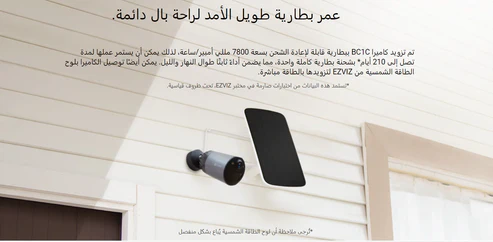 - عمر بطارية طويل الأمد لراحة بال دائمة: تم تزويد الكاميرا ببطارية قابلة لاعادة الشحن بسعة 7800 مللي امبير/ساعة لذلك
