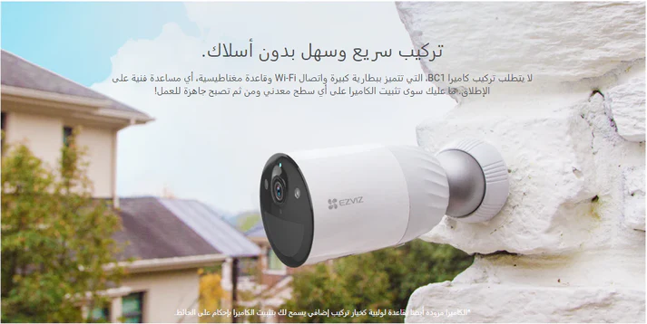 نعم , بأمكانك مشاركة الكاميرا على اكثر من حساب والتحكم ايضا بصلاحيات الحسابات الأخرى.هل الكاميرا تحتوي على ذاكرة تخزين ؟لا, بإمكانك إضافة ذاكرة التخزين من خلال أيقونة ( إضافة ذاكرة تخزين )هل أستطيع إضافة أكثر من كاميرا على حسابي بالتطبيق ؟نعم , بامكانك اضافة الى عدد لامحدود من الكاميرات على نفس الحساب سواء كانت من نفس الموديل او موديلاتEZVIZ الآخرى.كيف تعمل الكاميرا ؟تعمل ببطارية قابلة للشحن.هل أستطيع التواصل بالصوت من خلال الكاميرا ؟نعم , بأمكانك التخاطب بالصوت والاستماع من التطبيق أينما كنت.هل يوجد رؤية ليلية بالكاميرا ؟نعم , الكاميرا تتحول الى رؤية ليلية تلقائية عندما تنطفئ الأضواء. هل أستطيع تثبيت الكاميرا بسقف المنزل ؟نعم بإمكانك من خلال إحدى الطرق التالية:إضافة خدمة ( إرسال فني للتركيب )تثبيتها بنفسك من خلال المسامير الملحقة مع الكاميرا.هل الكاميرا ترصد الحركة ؟نعم , وايضا ترسل إشعار لهاتفك مباشرة.هل يوجد خاصية تتبع للحركة ؟لا