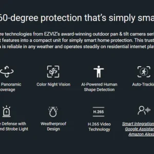 - مشاهدة مباشرة من أي مكان في العالم عبر تطبيق الهاتف EZVIZ.