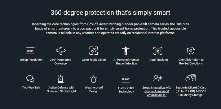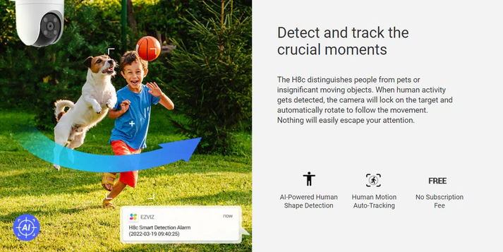 H8C EZVIZ كاميرا مراقبة واي فاي خارجية متحركة تعمل بالتحريك والإمالة