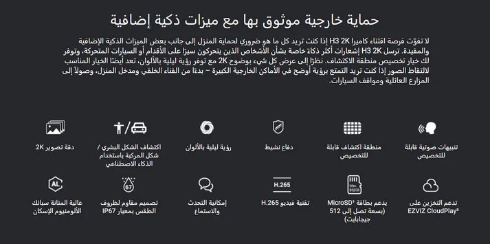 مميزات كاميرا المراقبة Ezviz H3 3MP: