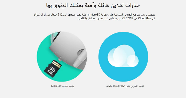 - يدعم خدمة التخزين السحابي EZVIZ CloudPlay.