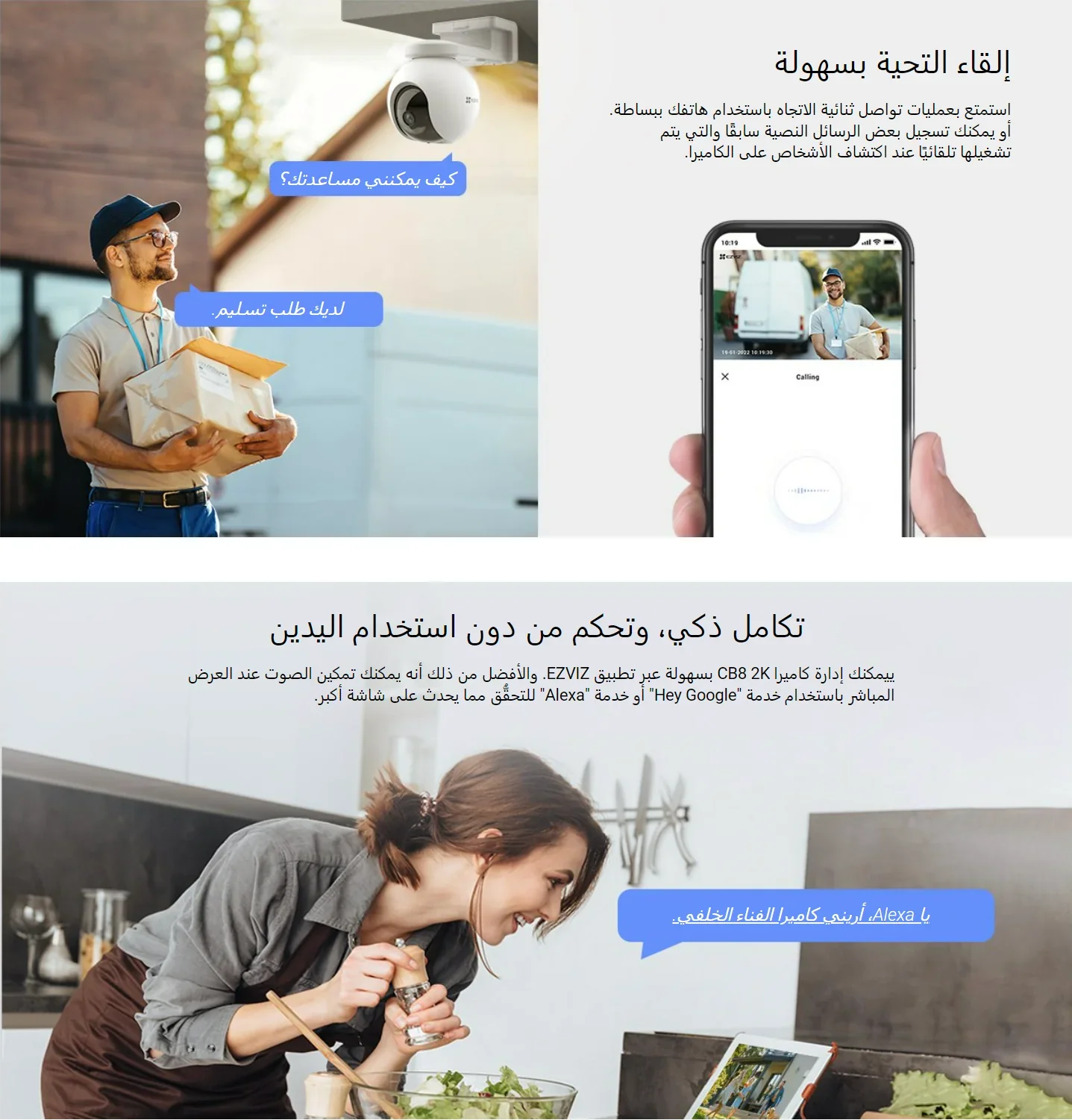 • التحدث والاستماع: التواصل مع من في المنزل أو اطلب المساعدة بسهولة.
